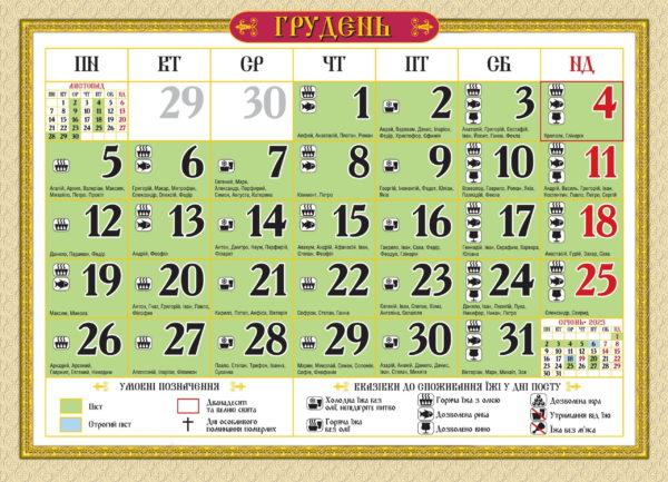 Календар церковний на 2022 рік.