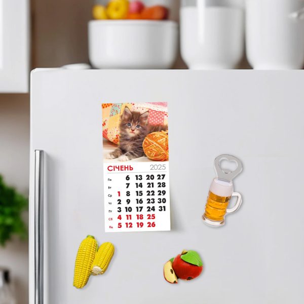 Календар добре і легко кріпиться магнітом на будь – яку металеву поверхню: холодильник, жовчні накладки і т.д.