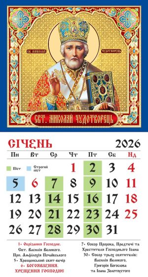 Відривний календар з розкладкою на кожен місяць.Позначені державні свята.