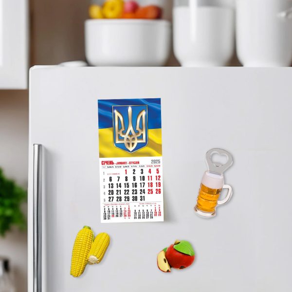 Календар 2025 магніт. Тризуб на Фоні Прапора