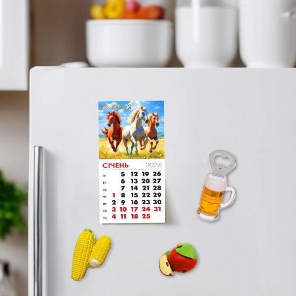 Календар добре і легко кріпиться магнітом на будь-яку металеву поверхню: холодильник, жовчні накладки і т.д.