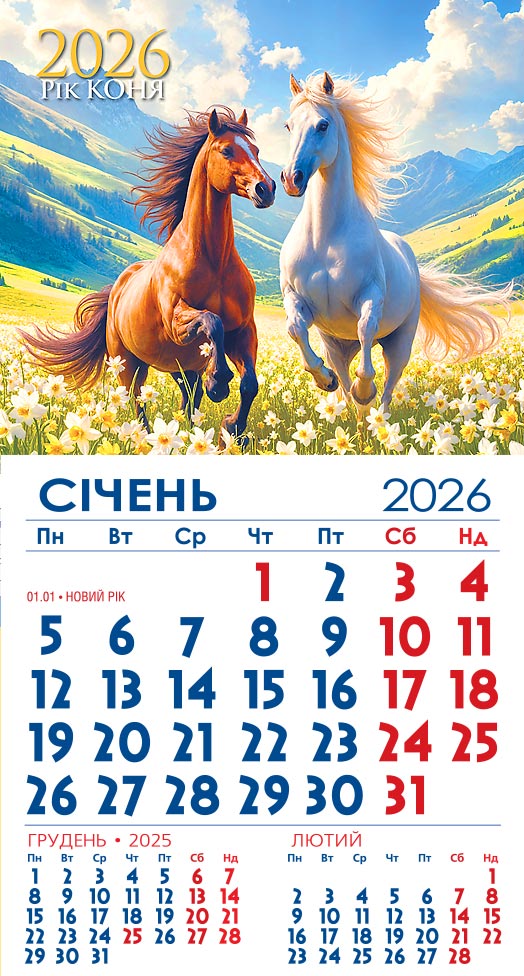 Відривний календар з розкладкою на кожен місяць.Позначені державні свята.