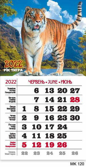 Матеріал: картон з ультрафіолетовим лакуванням, календарна сітка – крейдований папір.