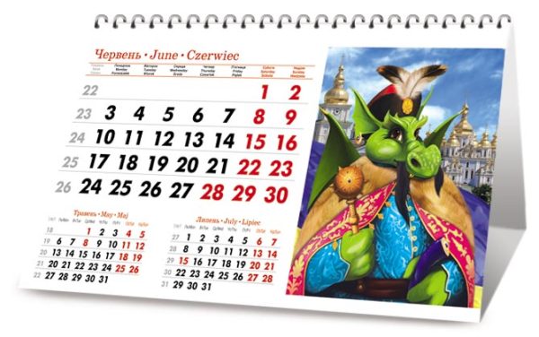 Календарна сітка на трьох мовах: українська, англійська, польська.