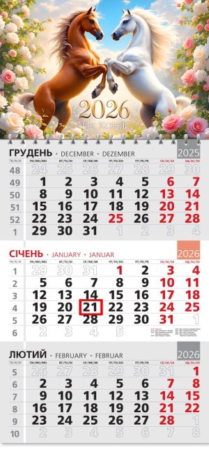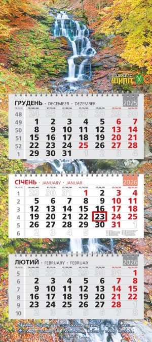 Календарна сітка на трьох мовах: українська, англійська, польська.