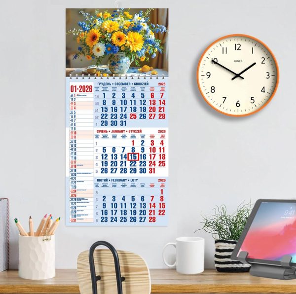 Календарна сітка на трьох мовах: українська, англійська, польська.