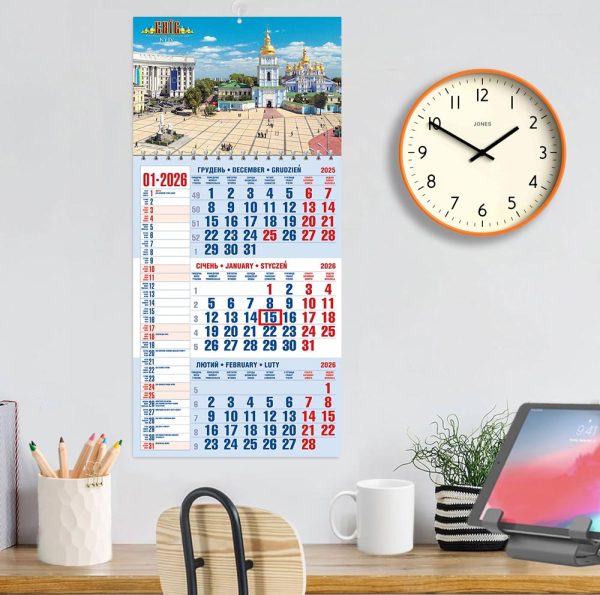 Календарна сітка на трьох мовах: українська, англійська, польська.