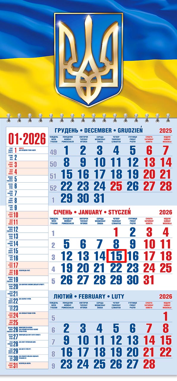 Календарна сітка на трьох мовах: українська, англійська, польська.