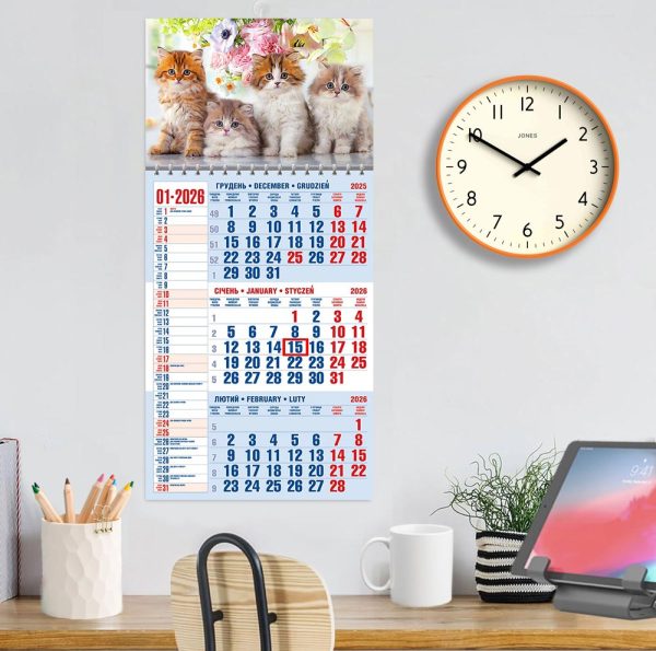 Календарна сітка на трьох мовах: українська, англійська, польська.