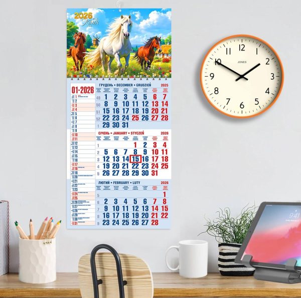 Календарна сітка на трьох мовах: українська, англійська, польська.