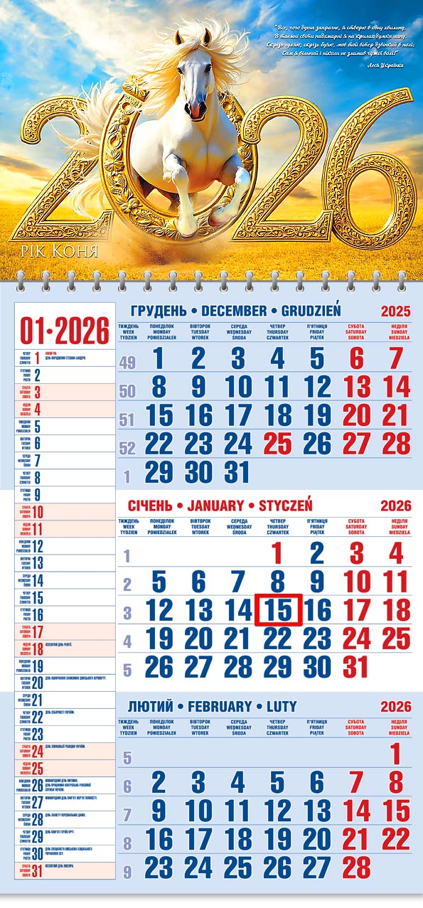 Календарна сітка на трьох мовах: українська, англійська, польська.