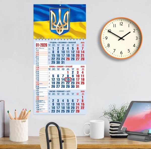 Календар 2026 офісний 1. Тризуб на фоні прапора