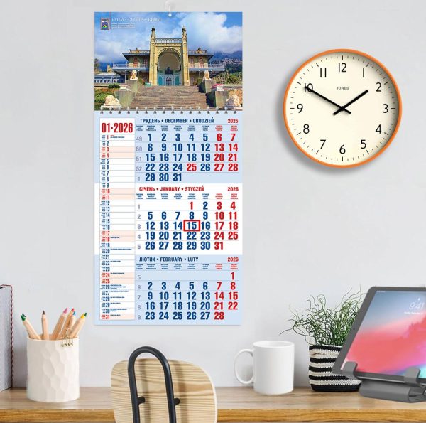 Календарна сітка на трьох мовах: українська, англійська, польська.