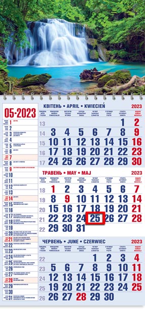 Три місяці на розвороті, зверху минулий, по центру поточний, нижній наступний місяць.