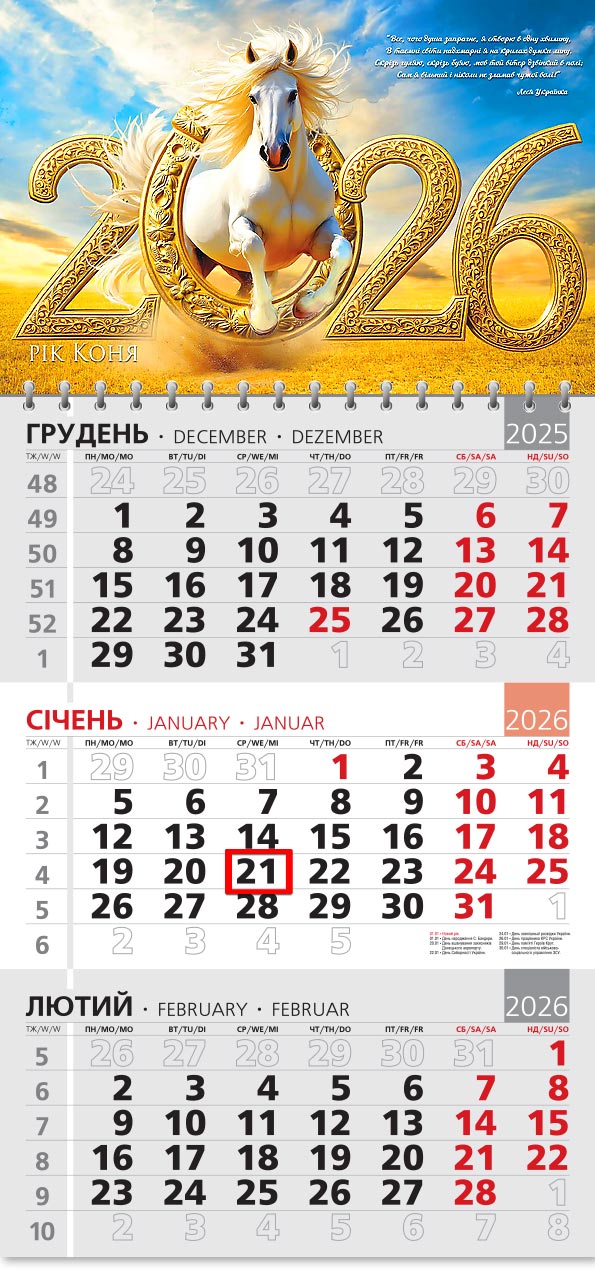 Календар 2026 офісний 3. Рік Коня