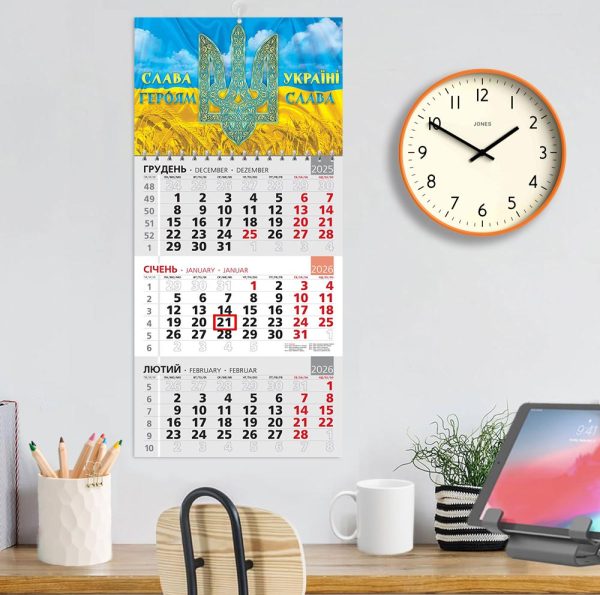 Календарна сітка на трьох мовах: українська, англійська, німецька.