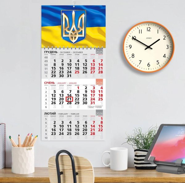 Календар 2026 офісний 3. Тризуб на фоні прапора