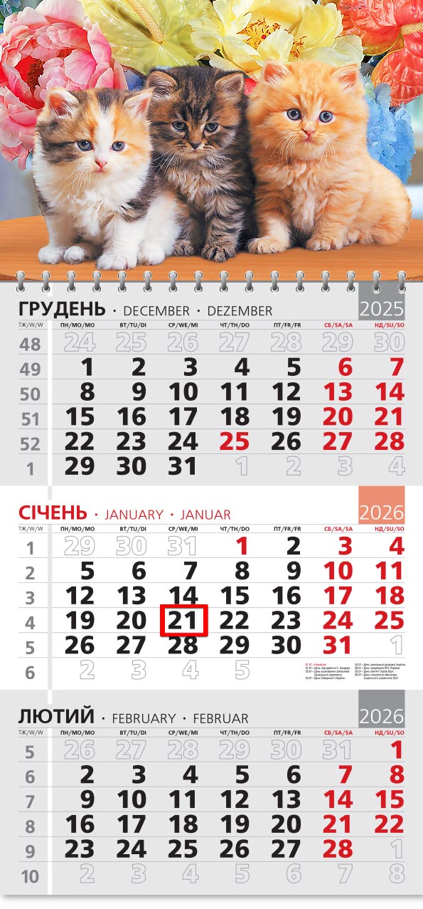 Календарна сітка на трьох мовах: українська, англійська, німецька.