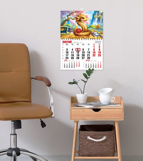 Матеріал: основа – картон, календарна сітка – крейдований папір, скріплені пружиною.