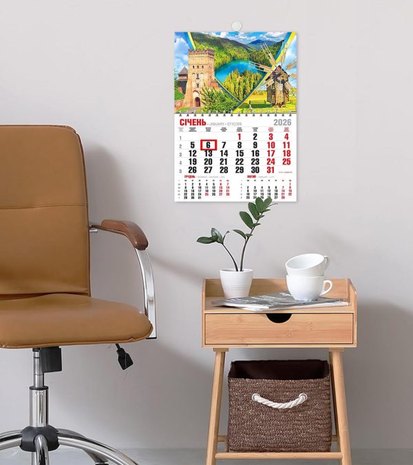 Календарна сітка на трьох мовах: українська, англійська, польська.