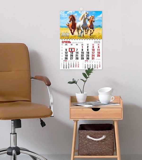 Календарна сітка на трьох мовах: українська, англійська, польська.