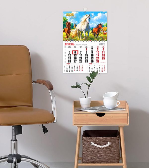 Календарна сітка на трьох мовах: українська, англійська, польська.