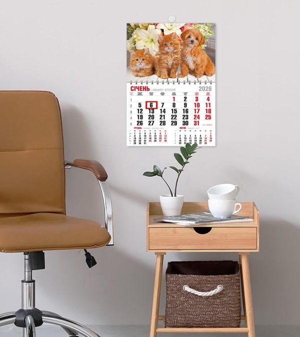 Календарна сітка на трьох мовах: українська, англійська, польська.