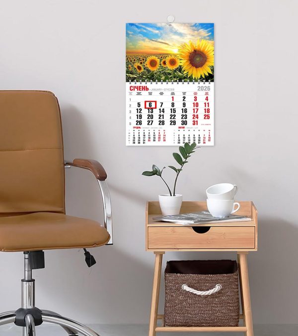 Календарна сітка на трьох мовах: українська, англійська, польська.