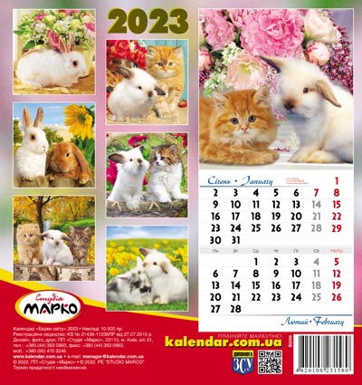 Календар настінний, перекидний. Барви світу. Рік Кролика 2023