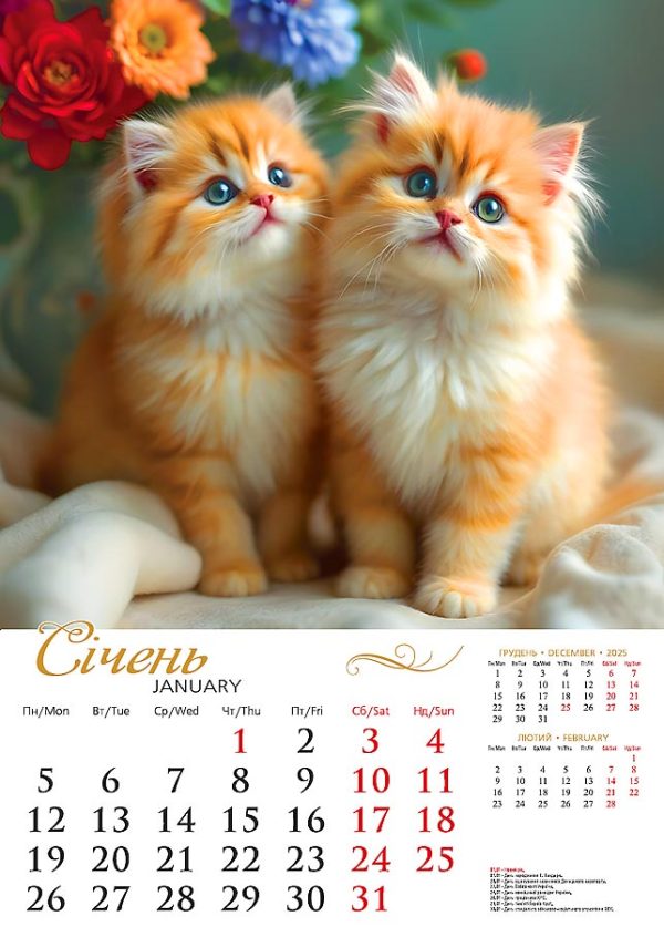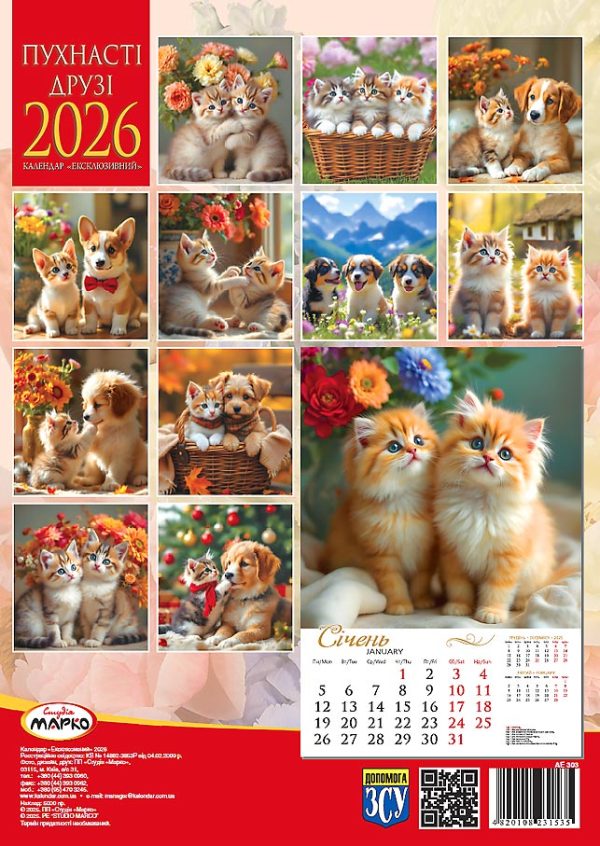 Календар 2026. Ексклюзив. Пухнасті друзі