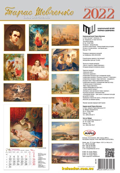 Календар настінний, перекидний. Ексклюзив. Тарас Шевченко.