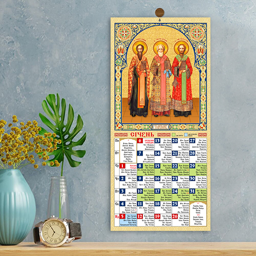Позначено православні свята, дні постів, іменини. Дні строгого і звичайного постів, виділені різним кольором.