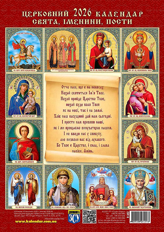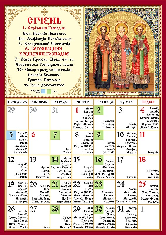 Календар 2026. Класичний. Свята, іменини, пости (2)