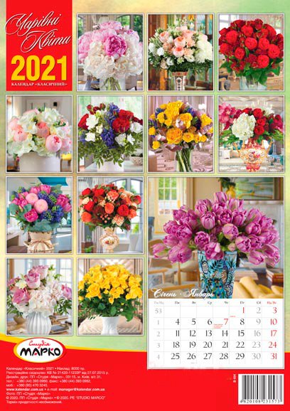 Календар класичний на 2021 рік.