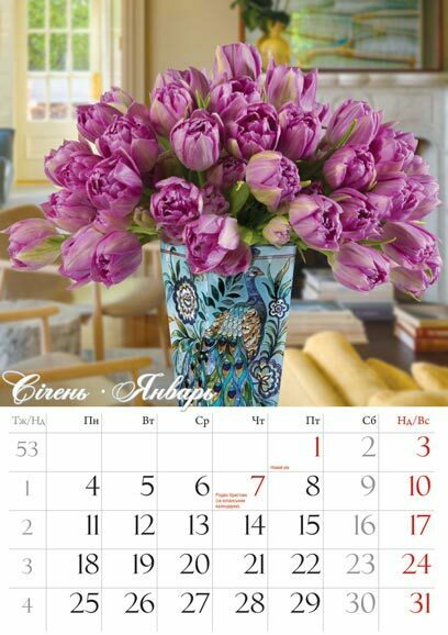 Календарна сітка на двох мовах: українською, російською. Церковна серія однією мовою: українська.