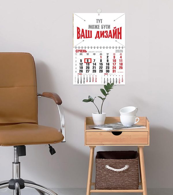 Календарна сітка на трьох мовах: українська, англійська, польська.
